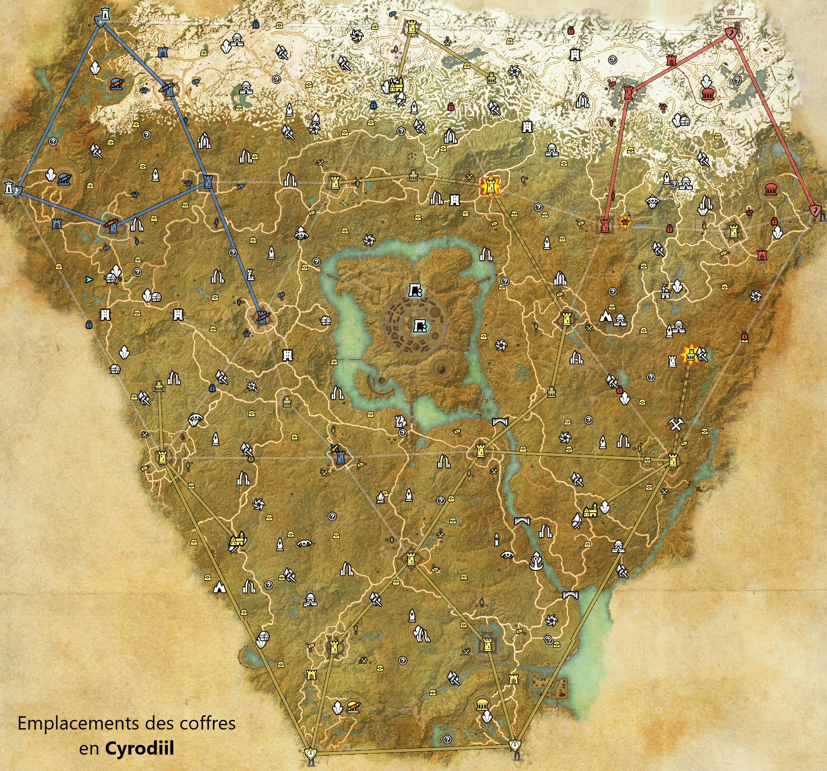 Voici la carte de Cyrodiil avec tous les emplacements des coffres dans la zone :
