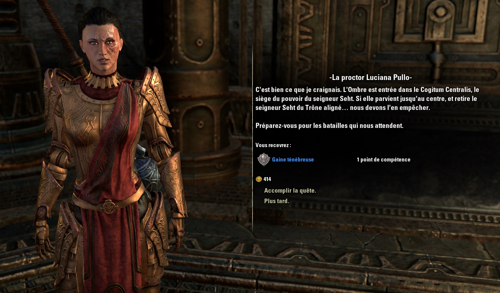 Le comportement de Sotha Sil a changé récemment. Dyvaith Fyr veut trouver la cause de ce changement radical. Enquêtez auprès des aides.