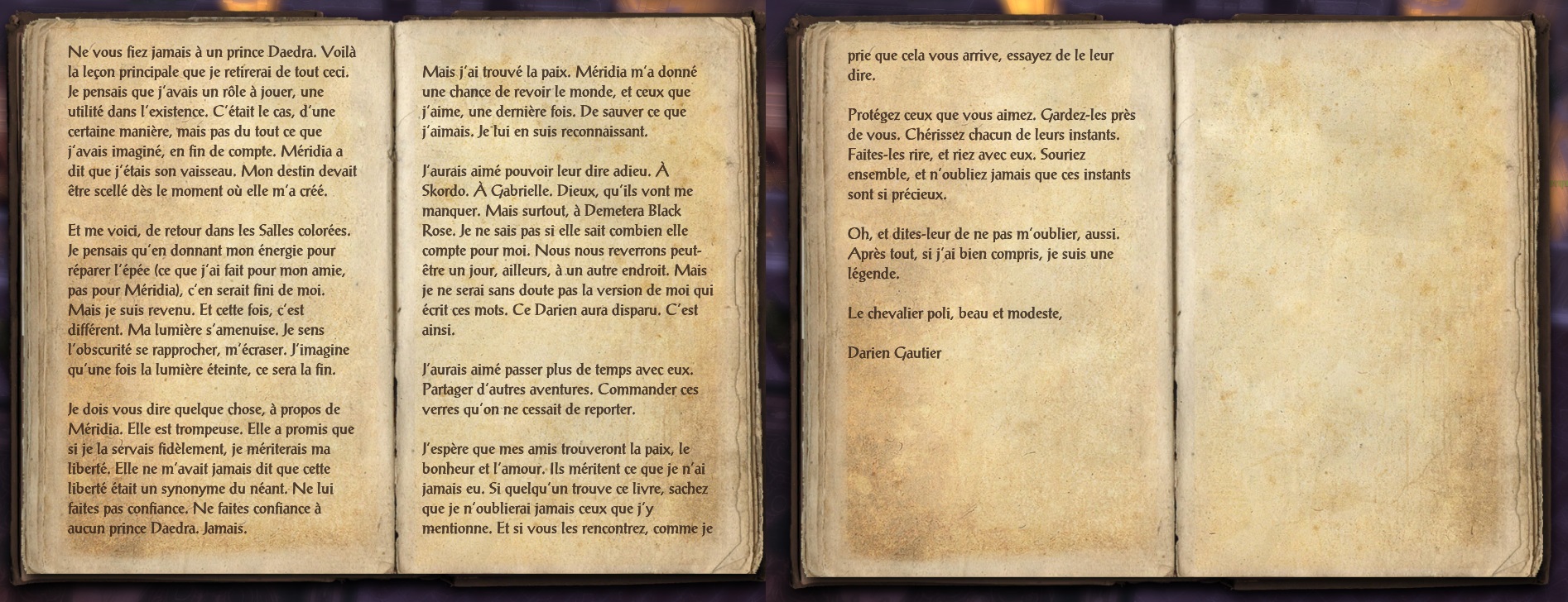Vous pouvez trouver divers notes dans le manoir de la matriarche pour votre bibliothèque du savoir : « La fin de l’isolement » près de la cheminée – « Un refus des frontières ouvertes » sur le bureau.