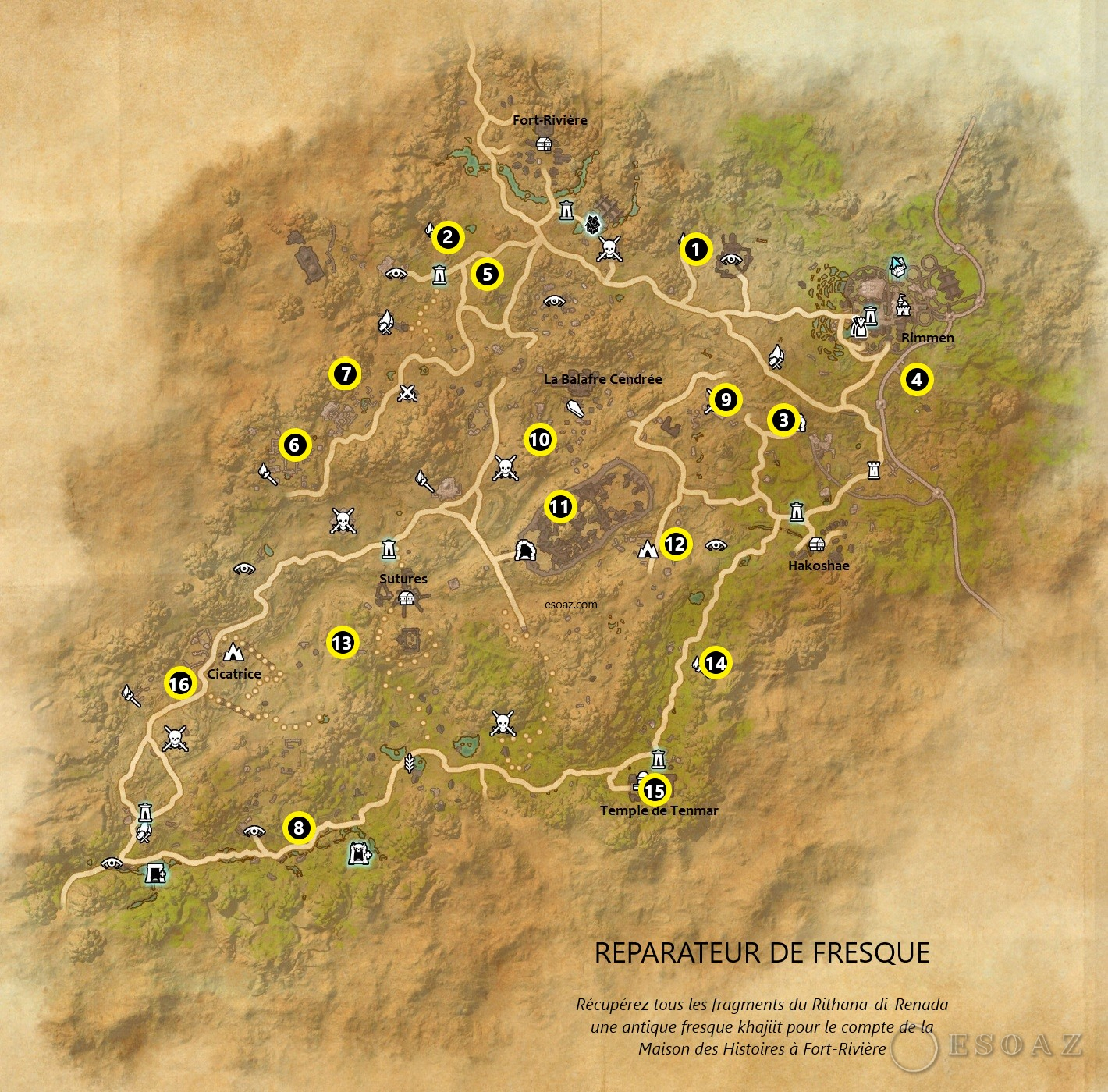 Bienvenue sur le guide consacré au succès d’Elsweyr Nord « Réparateur de fresque » qui consiste à récupérer des fragments du meuble