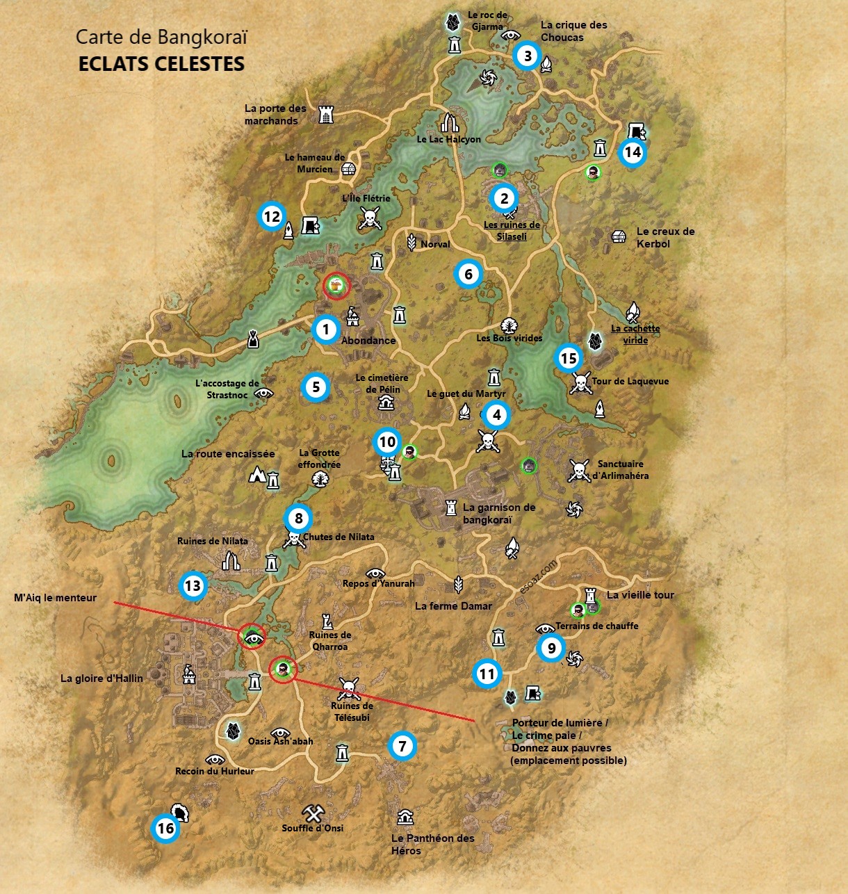 Vous trouverez sur la carte ci-dessous, les emplacements des succès d’exploration tels que porteur de lumière, c’est ma tournée etc … les éclats célestes ainsi que tous les lieux visitables de la carte.