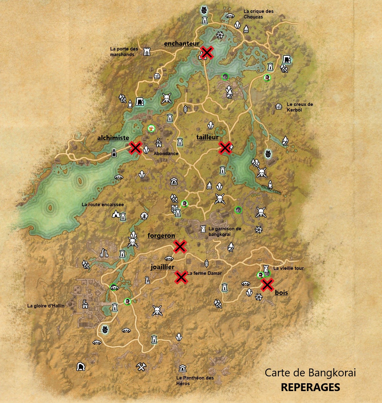 Repérage d’AlchimisteRepérage de TailleurRepérage de ForgeronRepérage d’EnchanteurRepérage du Travailleur du boisRepérage de Joaillier