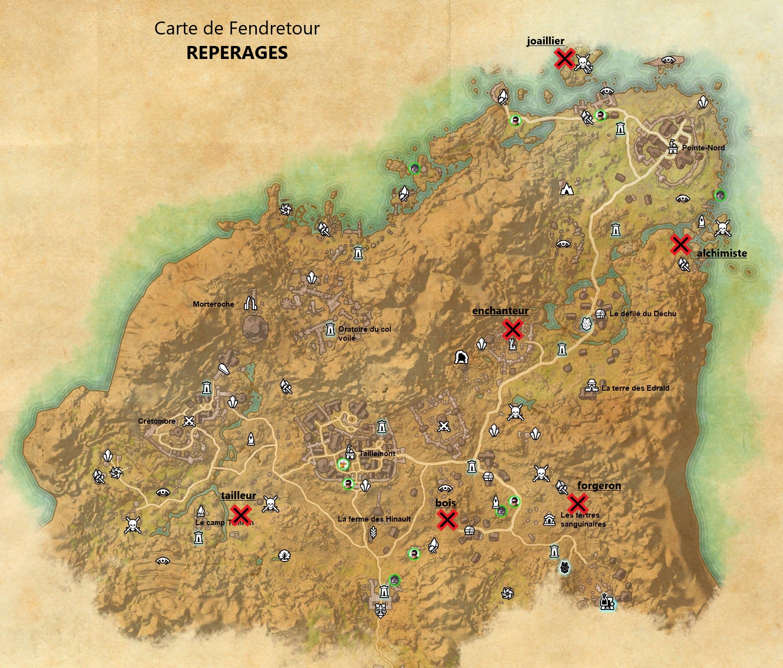 Repérage d’AlchimisteRepérage d’EnchanteurRepérage de ForgeronRepérage du Travailleur du boisRepérage du TailleurRepérage du Joaillier
