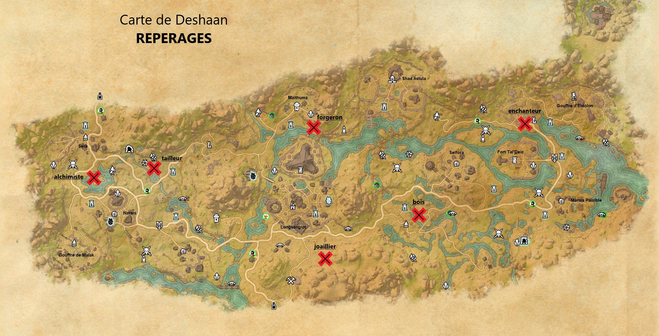 Repérage d’AlchimisteRepérage de TailleurRepérage du ForgeronRepérage du JoaillierRepérage de Travailleur du boisRepérage d’Enchanteur