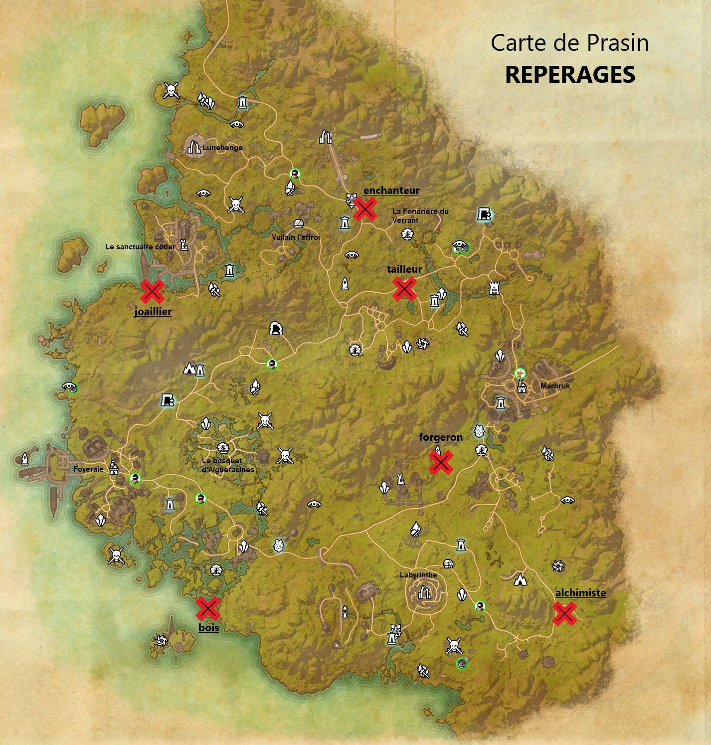 Repérage d’EnchanteurRepérage de TailleurRepérage de ForgeronRepérage du Travailleur du boisRepérage de JoaillierRepérage d’Alchimiste