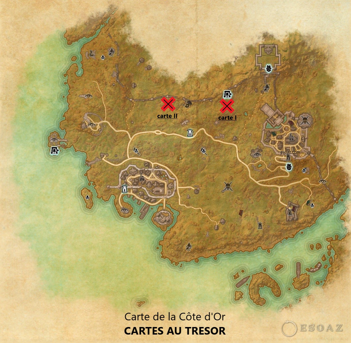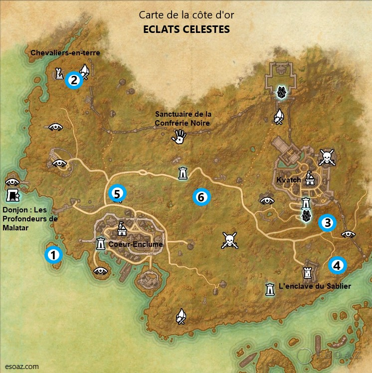 Bienvenue sur le guide spécial Cartes de TESO pour la zone : La côte d’or. La zone est débloquée avec le DLC Dark Brotherhood.