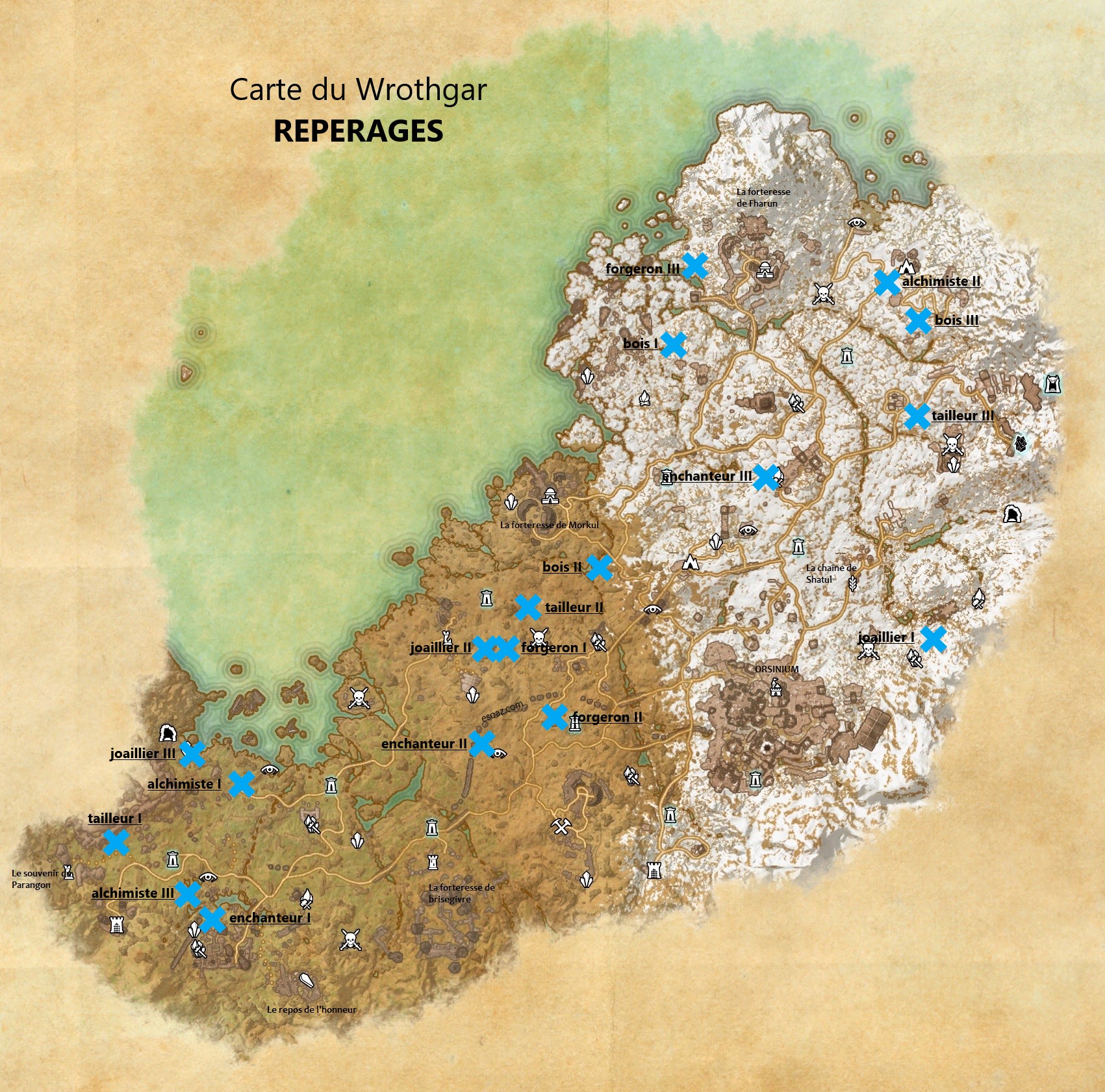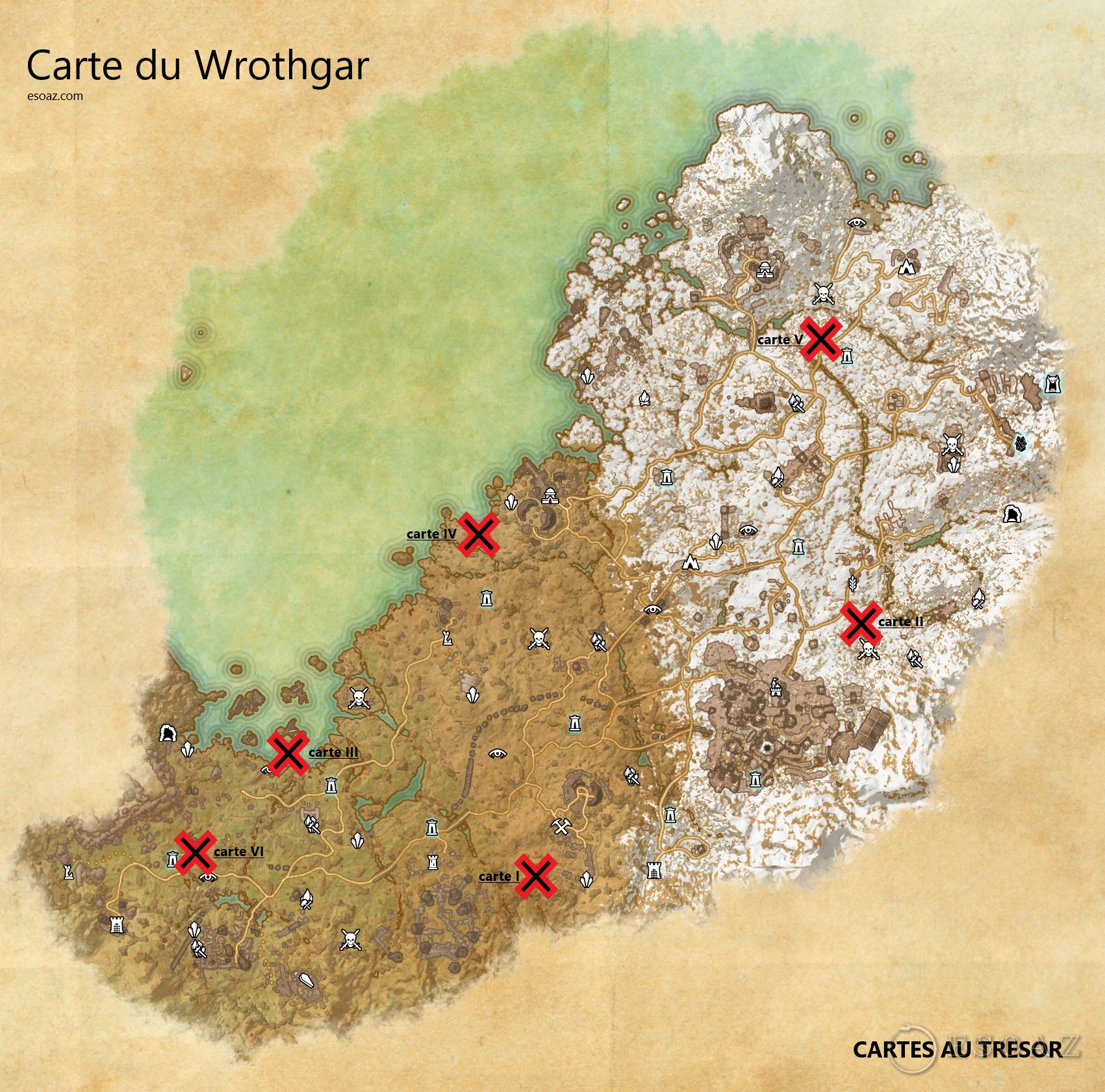 Bienvenue sur le guide spécial Cartes de TESO pour la zone : Wrothgar. La zone se débloque avec le DLC Orsinium.