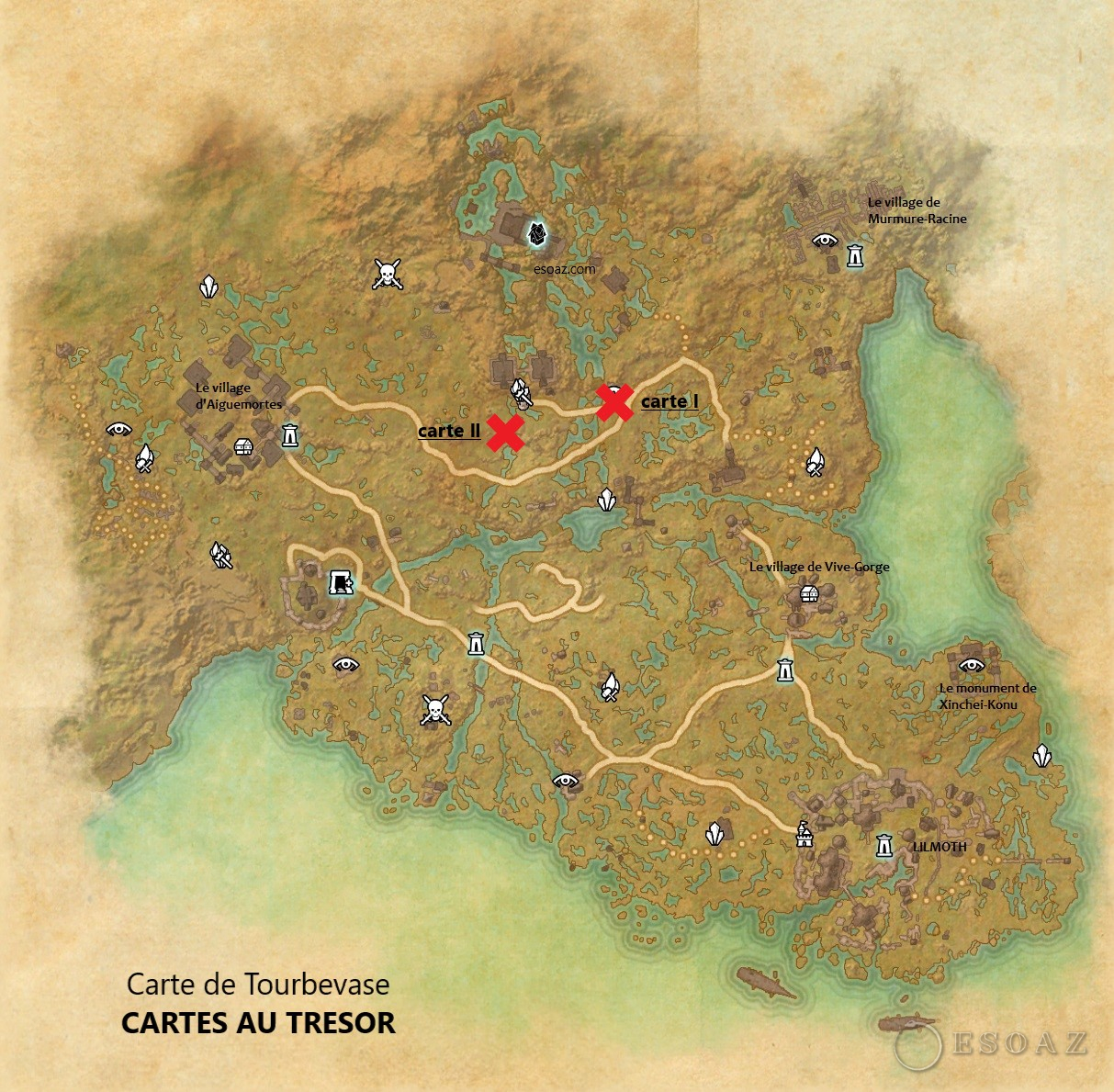 Bienvenue sur le guide spécial Cartes de TESO pour la zone : Tourbevase. La zone se débloque avec le DLC Murkmire.