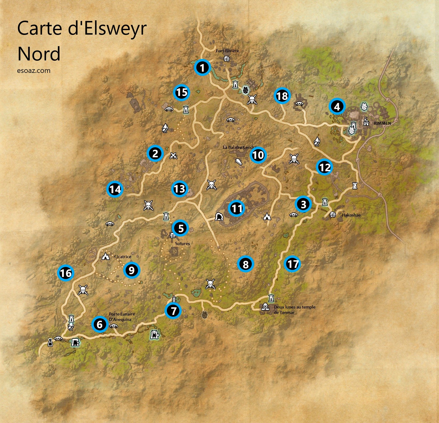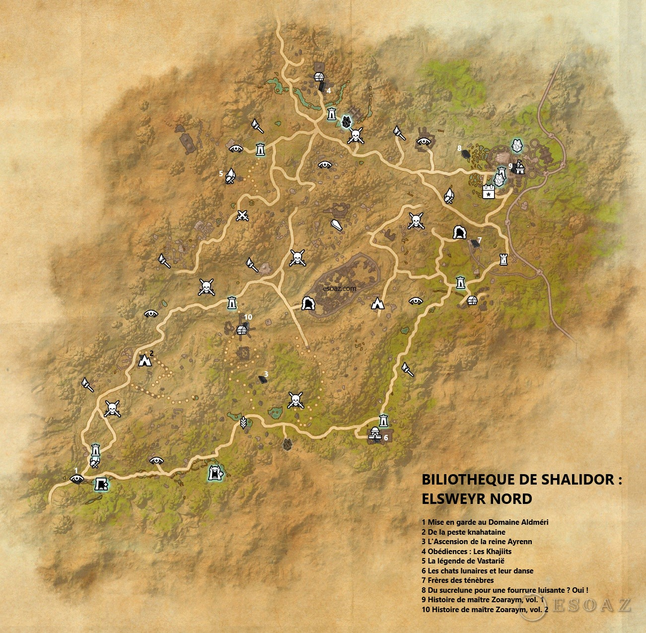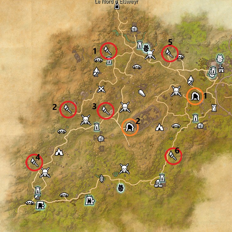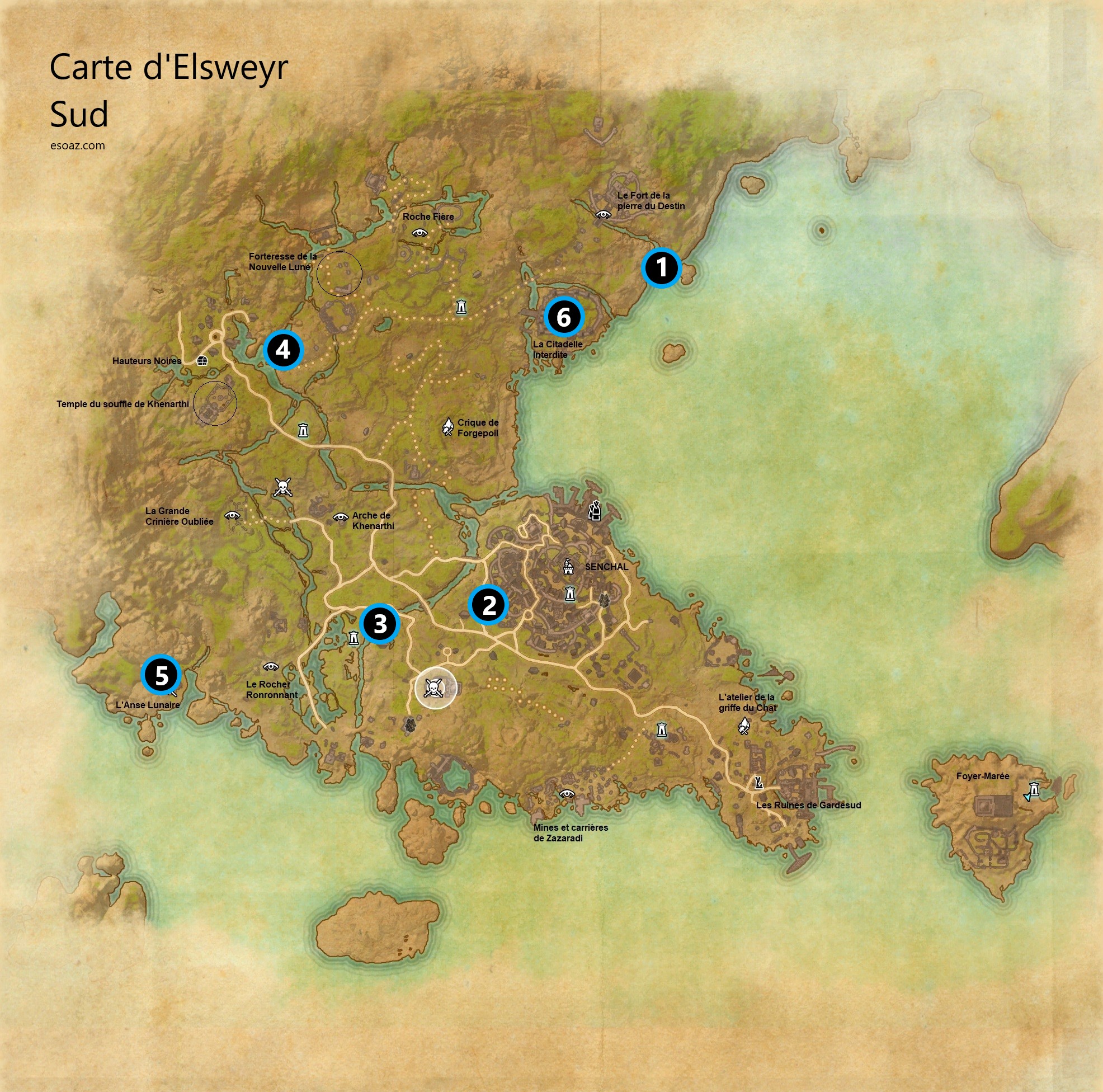 Bienvenue sur le guide spécial Cartes de TESO pour la zone : Elsweyr Nord & Sud . La zone Nord se débloque avec le chapitre Elsweyr tandis que la zone Sud se débloque avec le DLC Dragonhold .