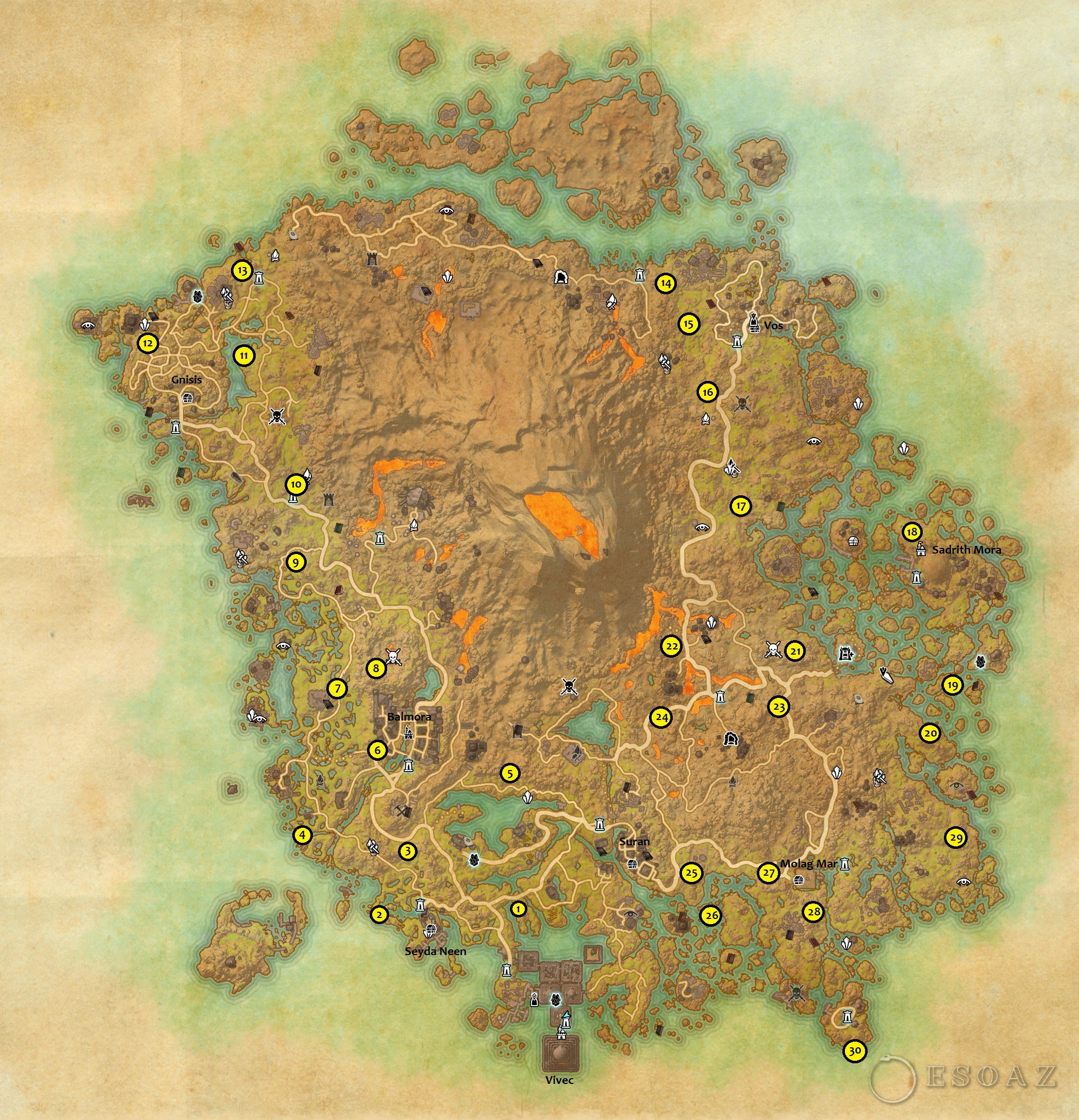 Trouvez les 30 tombeaux ancestraux de Vvardenfell, relevez les informations qu'ils contiennent et apportez-les au bibliothécaire Bradyn pour découvrir l'emplacement de la bibliothèque perdue d'Andule