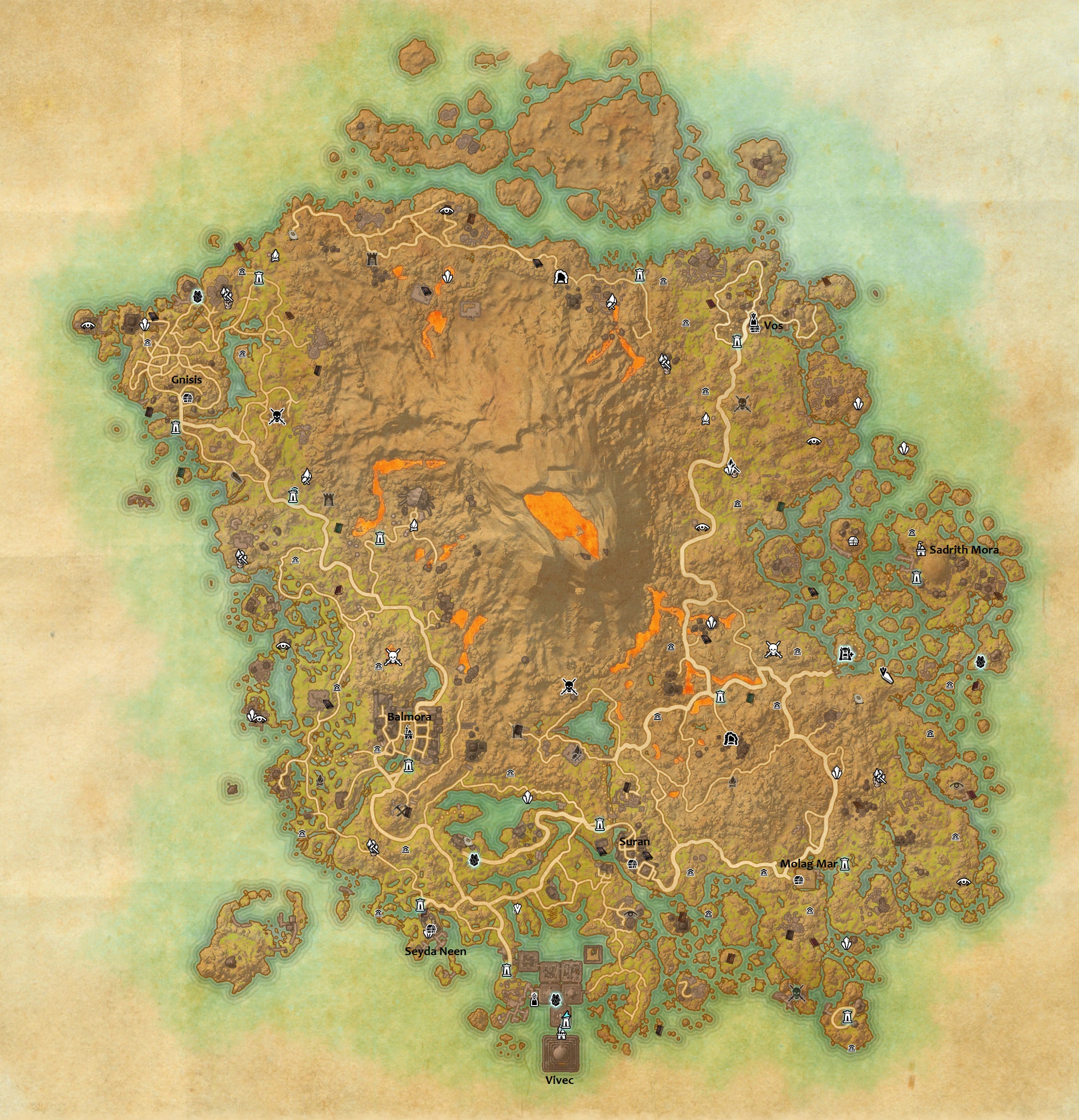 Bibliothèque de Shalidor : Vvardenfell. Retrouvez tous les livres de la guilde des mages sur une grande carte numérotée !