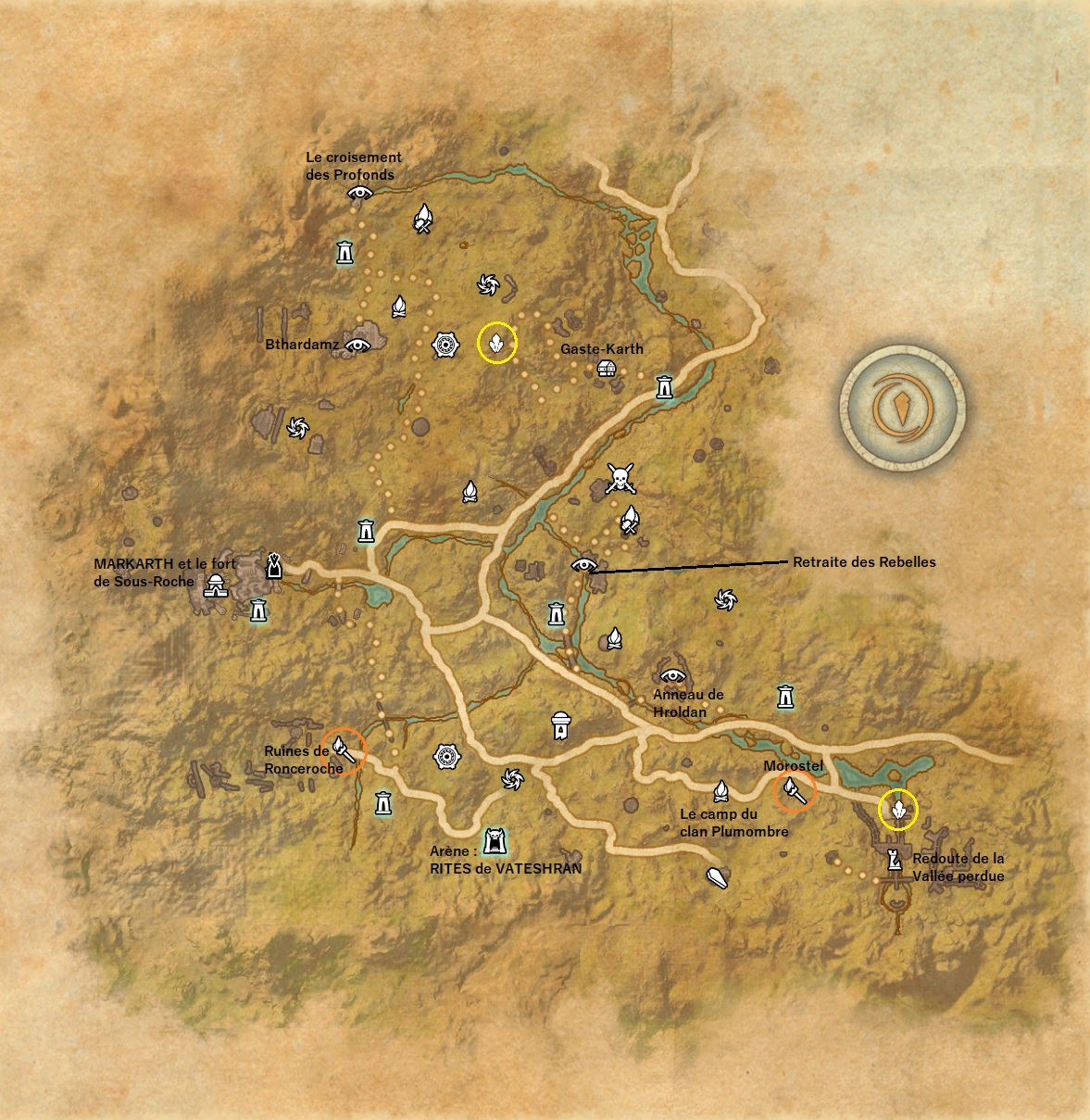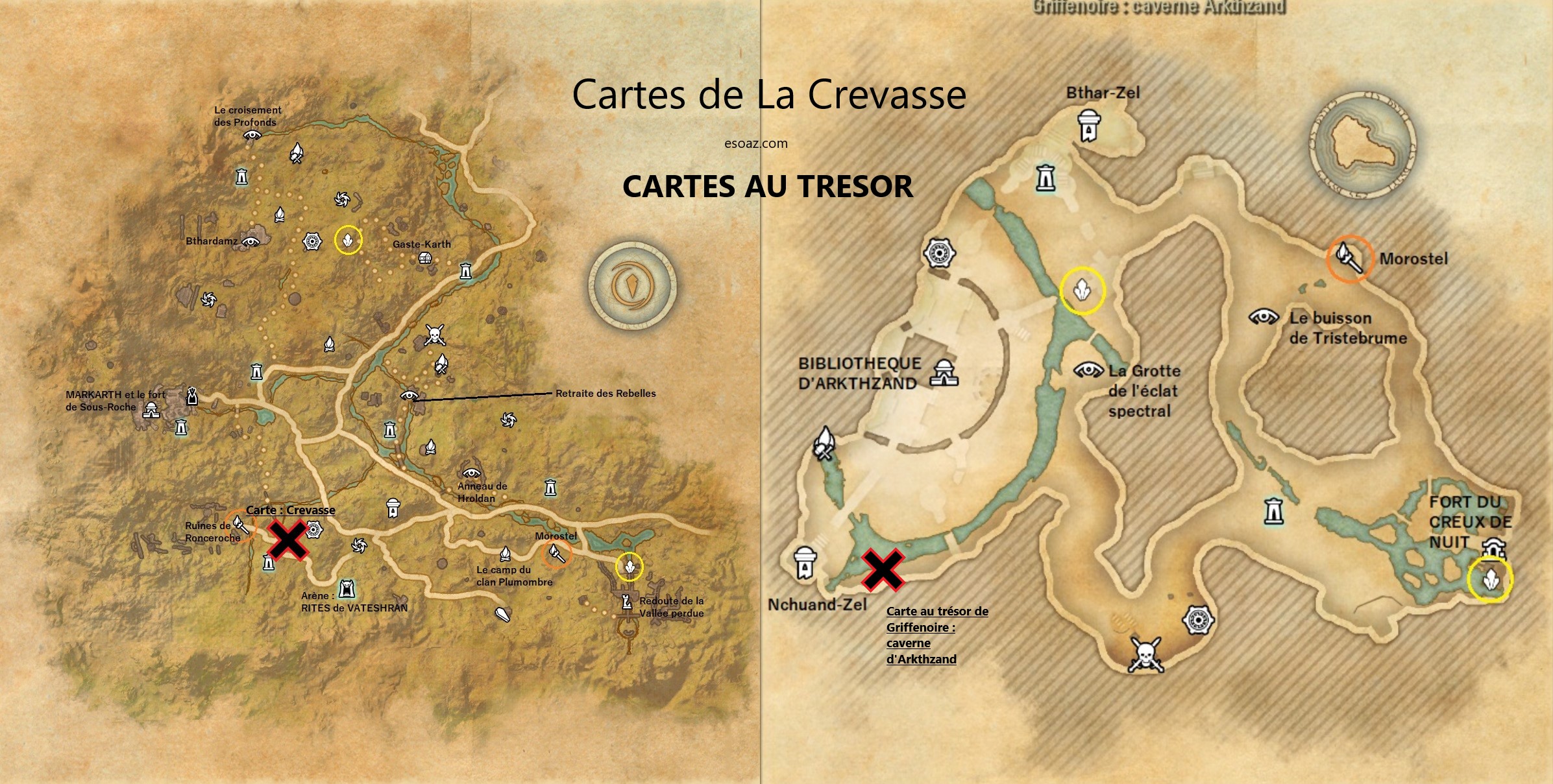 Bienvenue sur le guide des cartes de TESO pour la zone : La Crevasse. La zone se débloque avec le DLC Markarth.