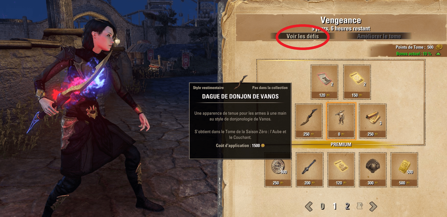 Une fois complété, votre défi vous donne une certaine somme de tome de tamriel que vous pourrez dépenser comme bon vous semble dans n’importe quelle page du pass de combat (= comprendre page débloquée).