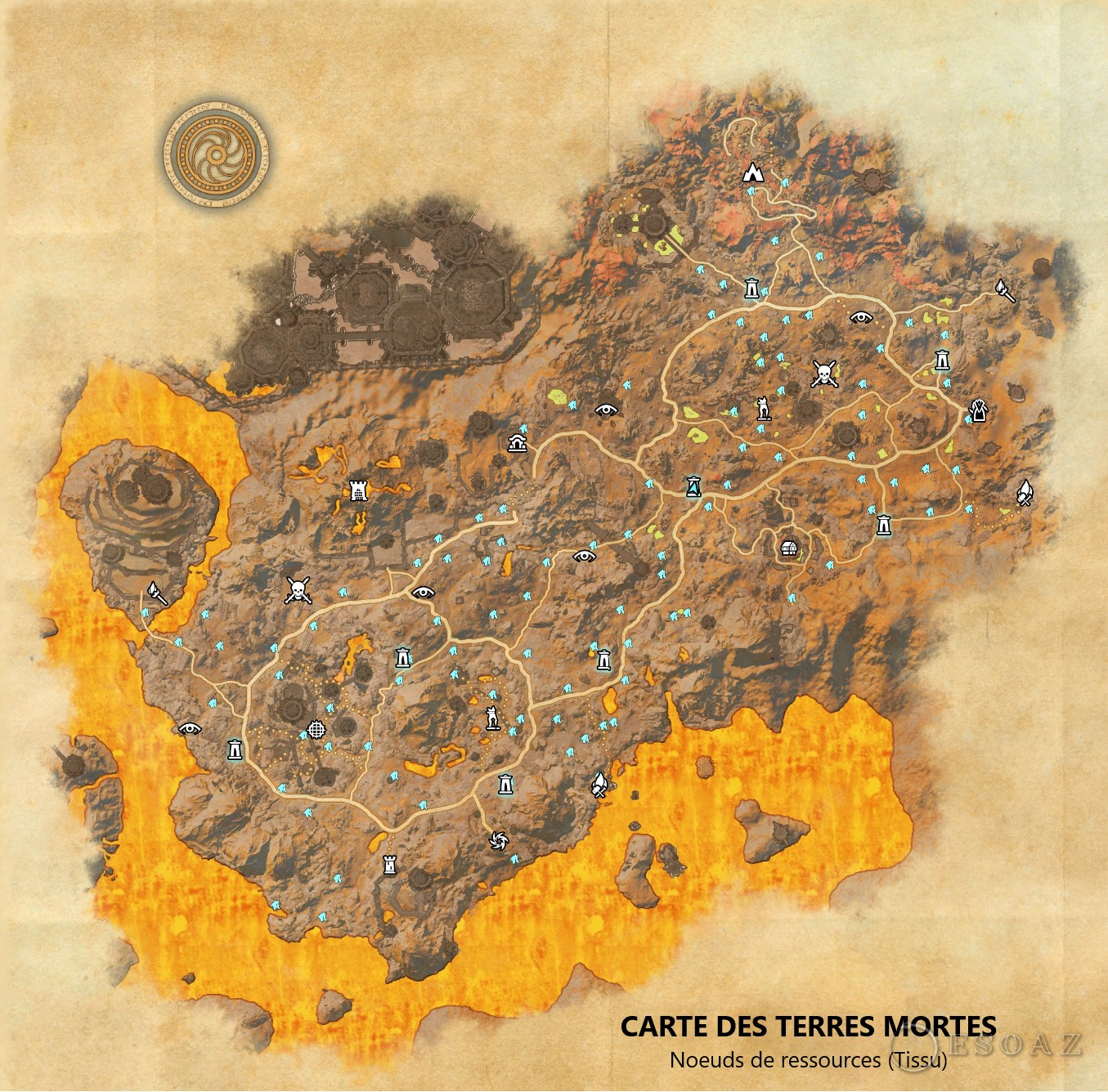 Bienvenue sur le guide des cartes de TESO pour la zone : Les Terres Mortes. La zone se débloque avec le DLC Deadlands.