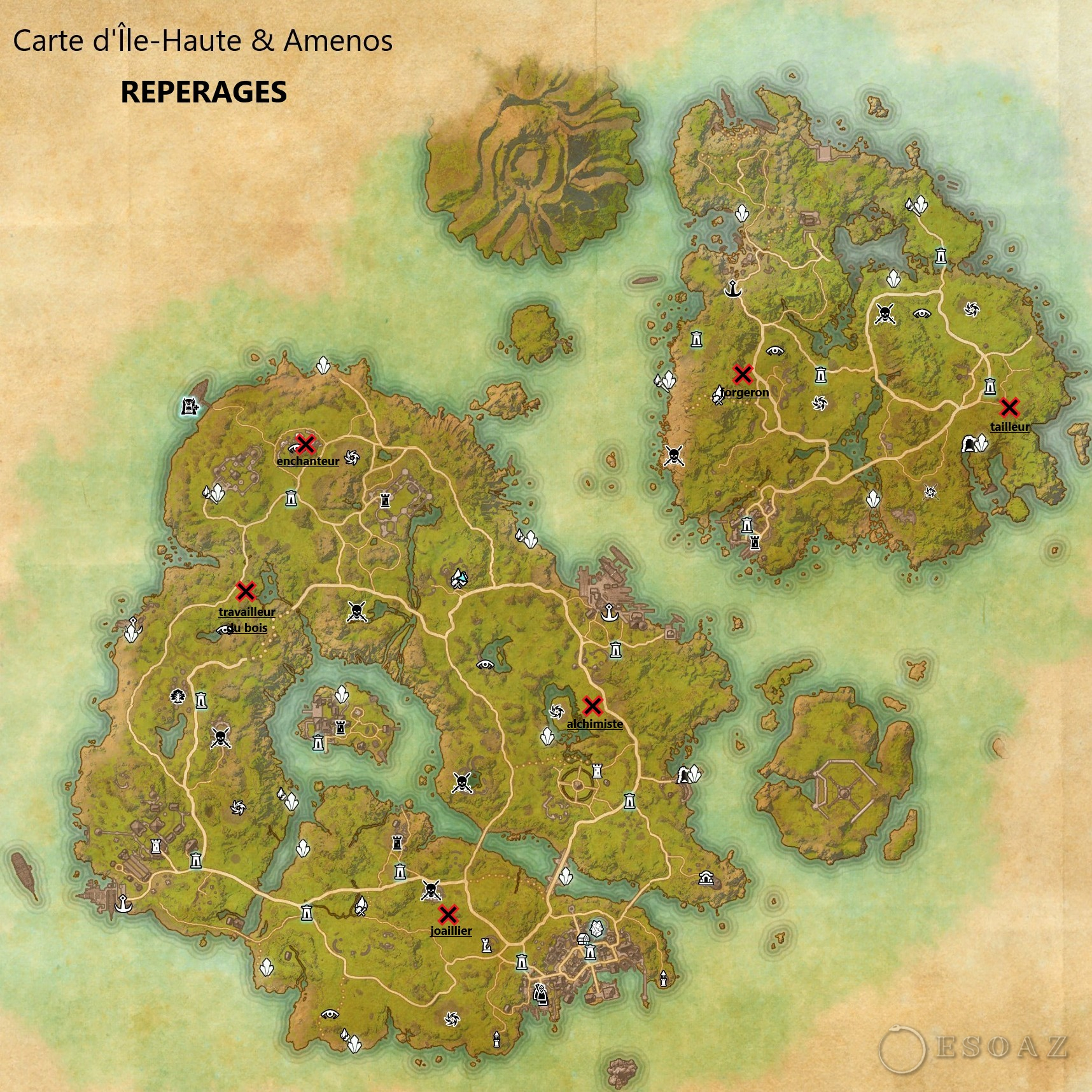 Repérage d’AlchimisteRepérage d’EnchanteurRepérage de Travailleur du boisRepérage de Joaillier (contre les rochers)Repérage de TailleurRepérage de Forgeron