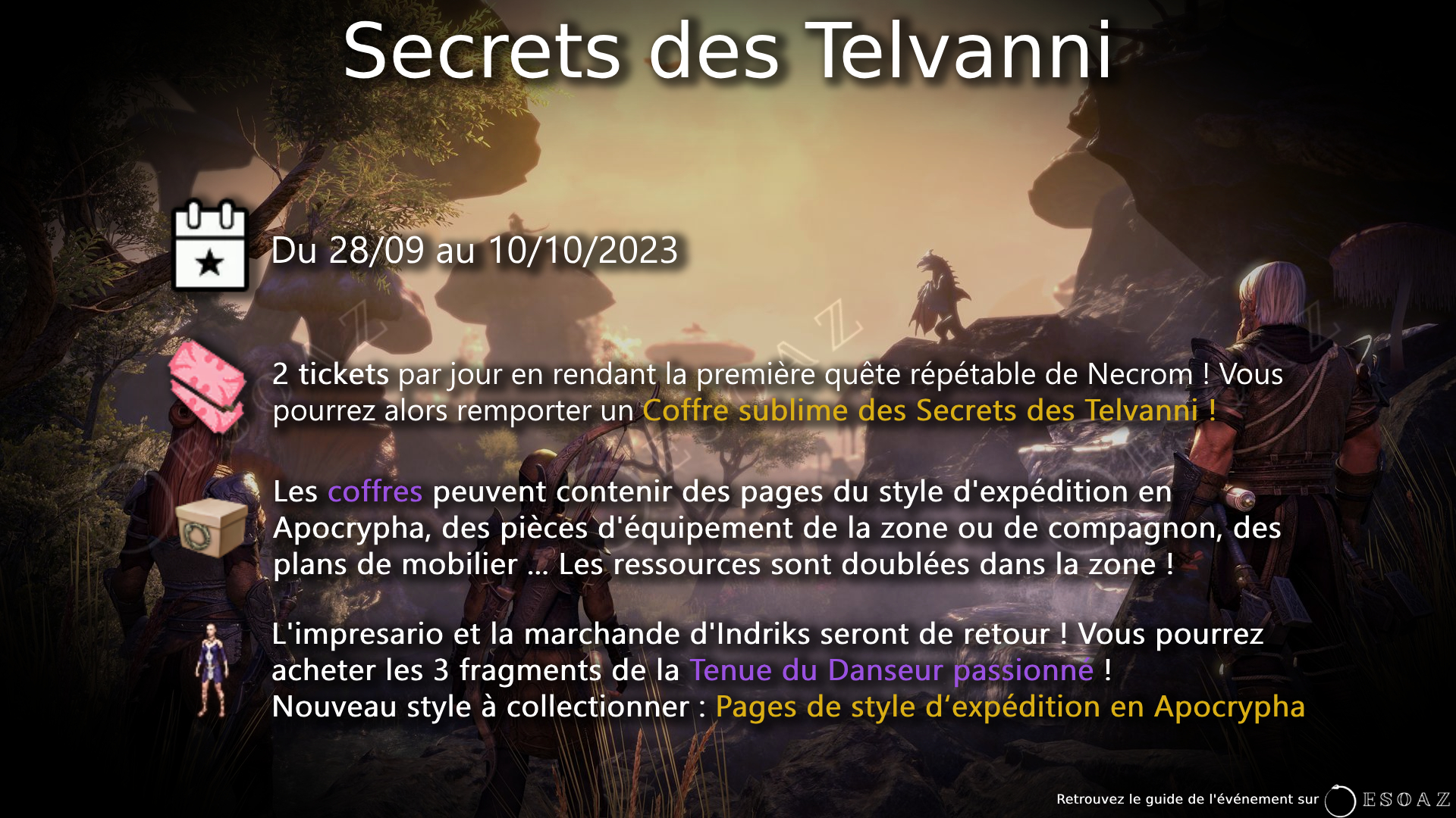 Guide complet du nouvel événement en jeu : Les Secrets des Telvanni mettant à l’honneur les zones de Necrom et d’Apocrypha sorties grâce au chapitre Necrom !